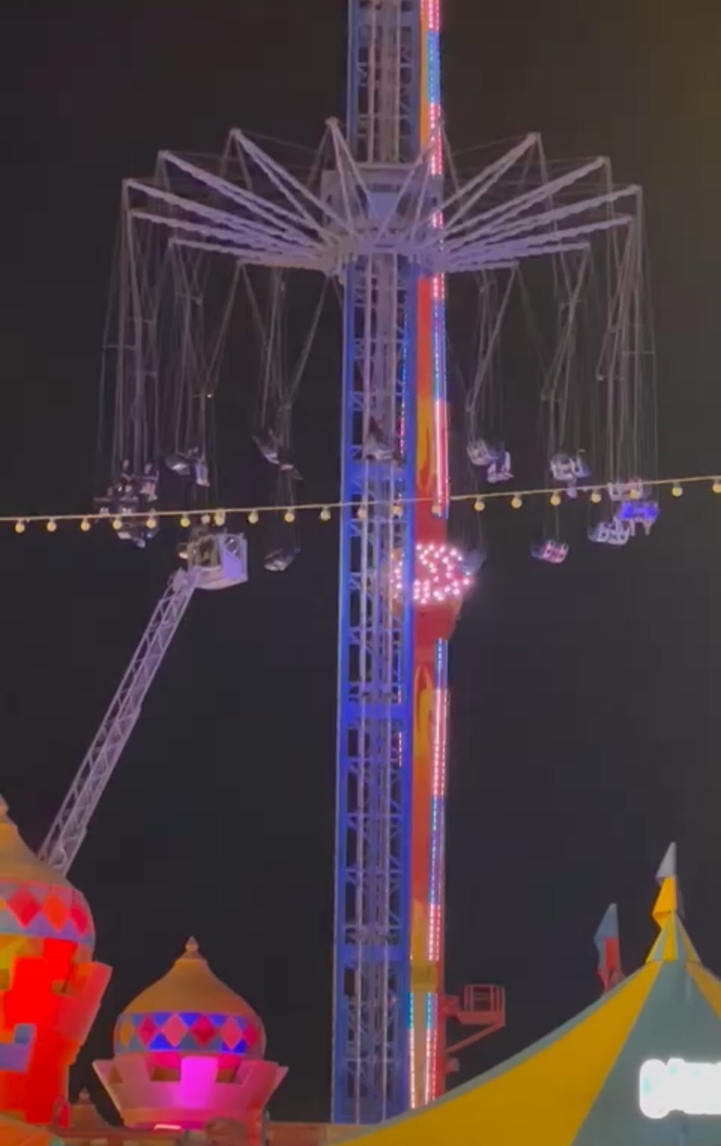 The ride sees daredevils lifted 85m into the air and spun around on swings.